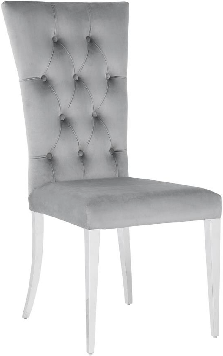 A polished chrome finish offers a modern flair to the sophisticated timeless legs