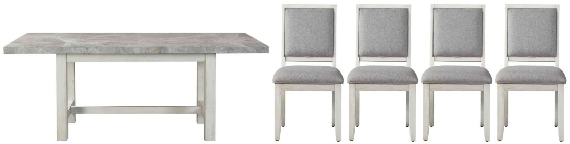 Clean lines and simple sophistication are the hallmarks of the Canova gray marble dining set. A cathedral white wood finish pairs with gray marble tops to create a rustic yet elegant design that is beautiful in classic, contemporary or farmhouse setting. Gray velvet chairs are easy-to-clean and add comfort to the dining collection.Read More