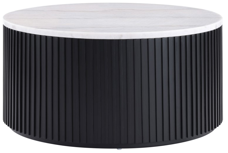 Inspired by Art Deco and Empire styling, the Colvin 36" Round White Top Marble Coffee Table in black finish adds refined elegance to any space. Its lustrous white marble top and black reeded base bring timeless sophistication, ideal for those who appreciate sleek design.Read More