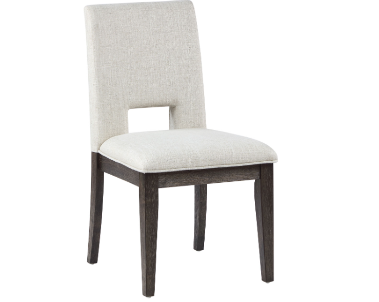 The Evan Side Chair, upholstered in eggshell linen-look fabric, balances comfort and style. Its sleek, walnut-finished solid wood legs pair beautifully with the full escape back, making this chair a striking addition to any dining table or as a standalone piece.Read More