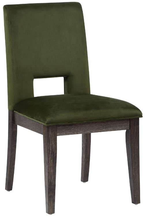 The Evan Side Chair, crafted from plush emerald-colored velvet, balances comfort and style. Its sleek, walnut-finished solid wood legs complement the full escape back, making this chair a striking addition to any dining table or as a standalone piece.Read More