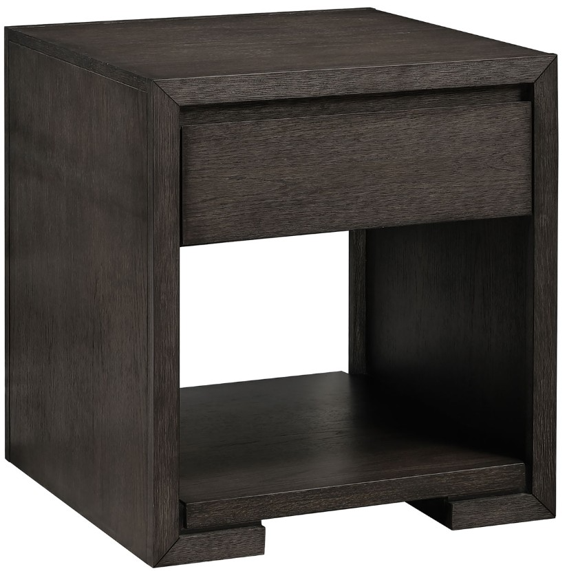 The 24" Evan side table features a clean, minimalist design with a walnut finish over oak veneers. Its hardware-free exterior and bottom shelf provide organized space, while an open area offers additional storage or display options. A convenient drawer allows for easy storage of essentials.Read More