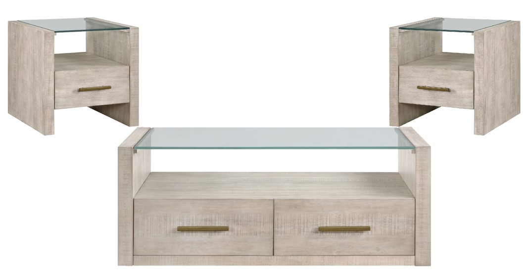 Bring casual elegance to your living room with the Garland 3-piece table set. At the center is the garland castered coffee table, a stylish blend of modern design and rustic charm. Its clean lines and saw rasp distressing in a modern washed parchment finish creating a stunning focal point.Read More