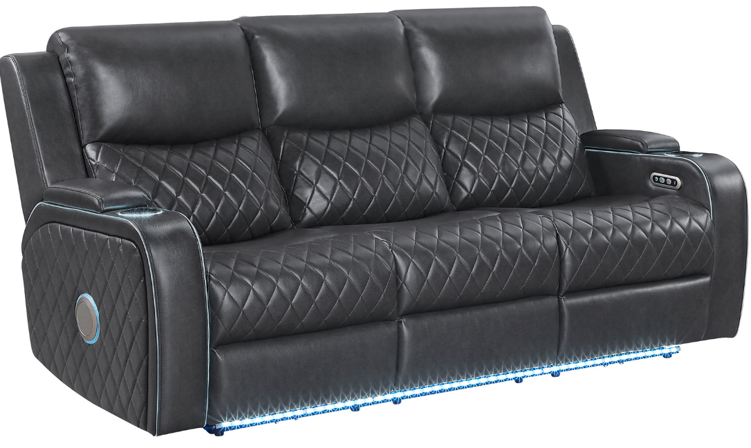 Relax in modern style with the Luna Charcoal, upholstered in smooth, charcoal-gray vegan leather featuring an elegant argyle-quilted pattern on the seats, backs, and sides for a refined, high-end look. Effortless power recline lets you adjust the back and footrest to your perfect position, while built-in speakers create immersive sound.Read More